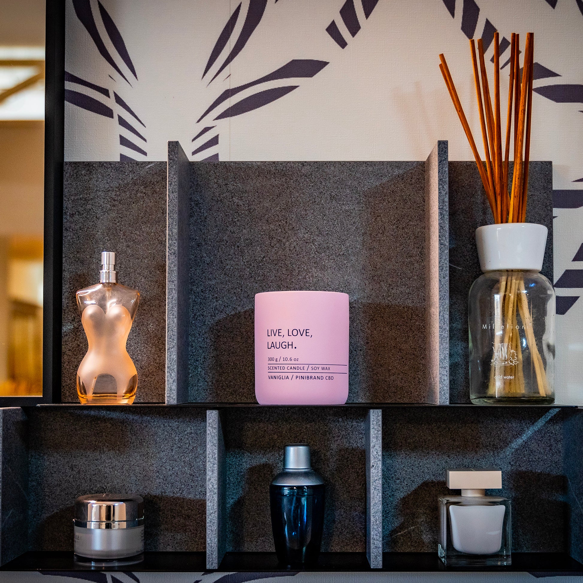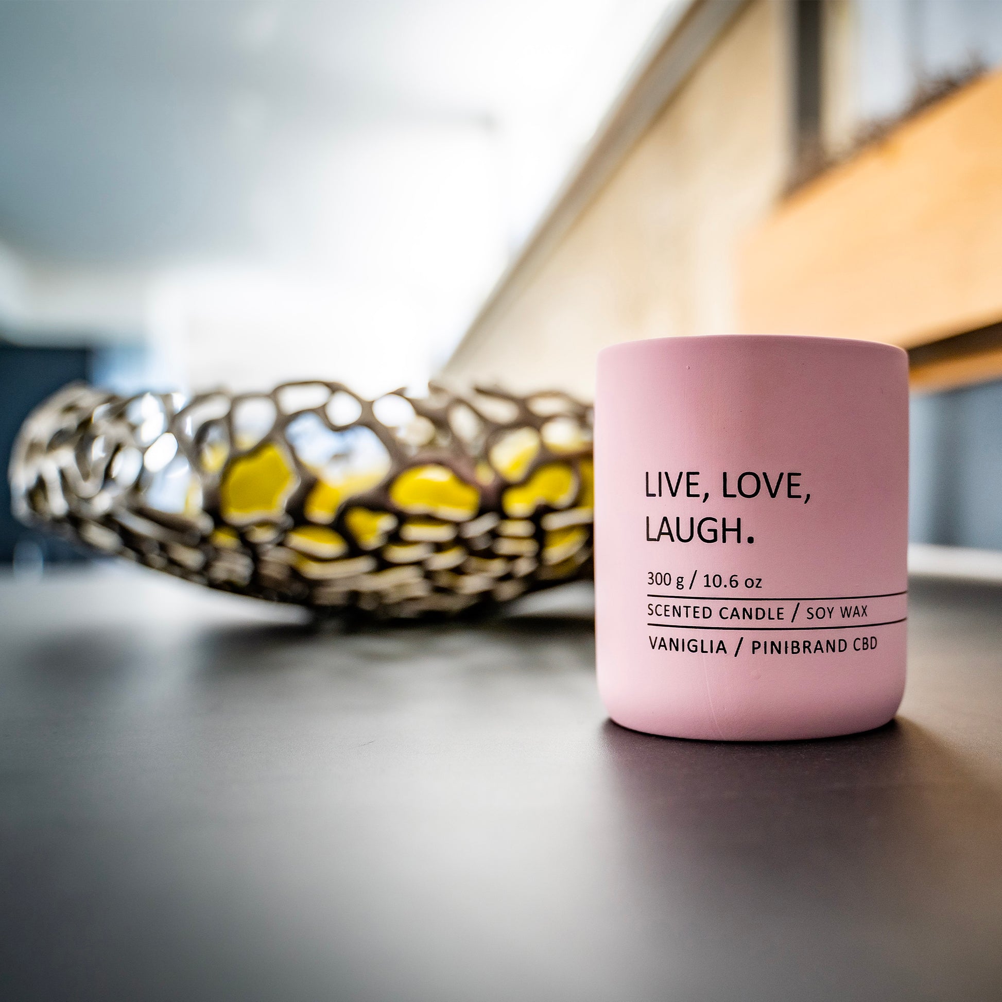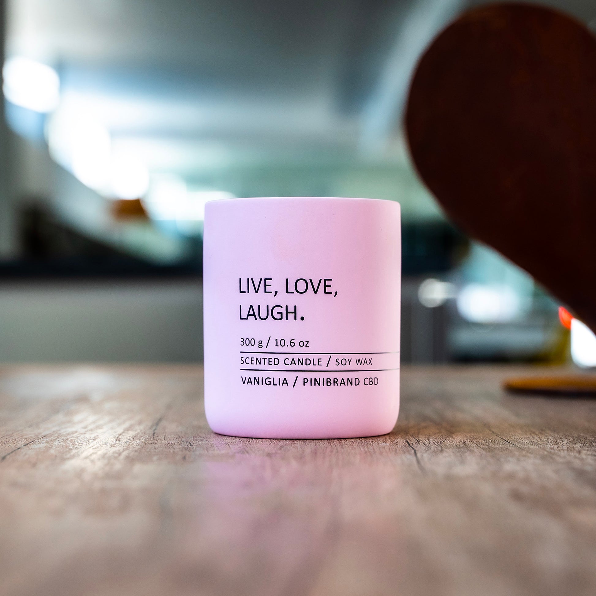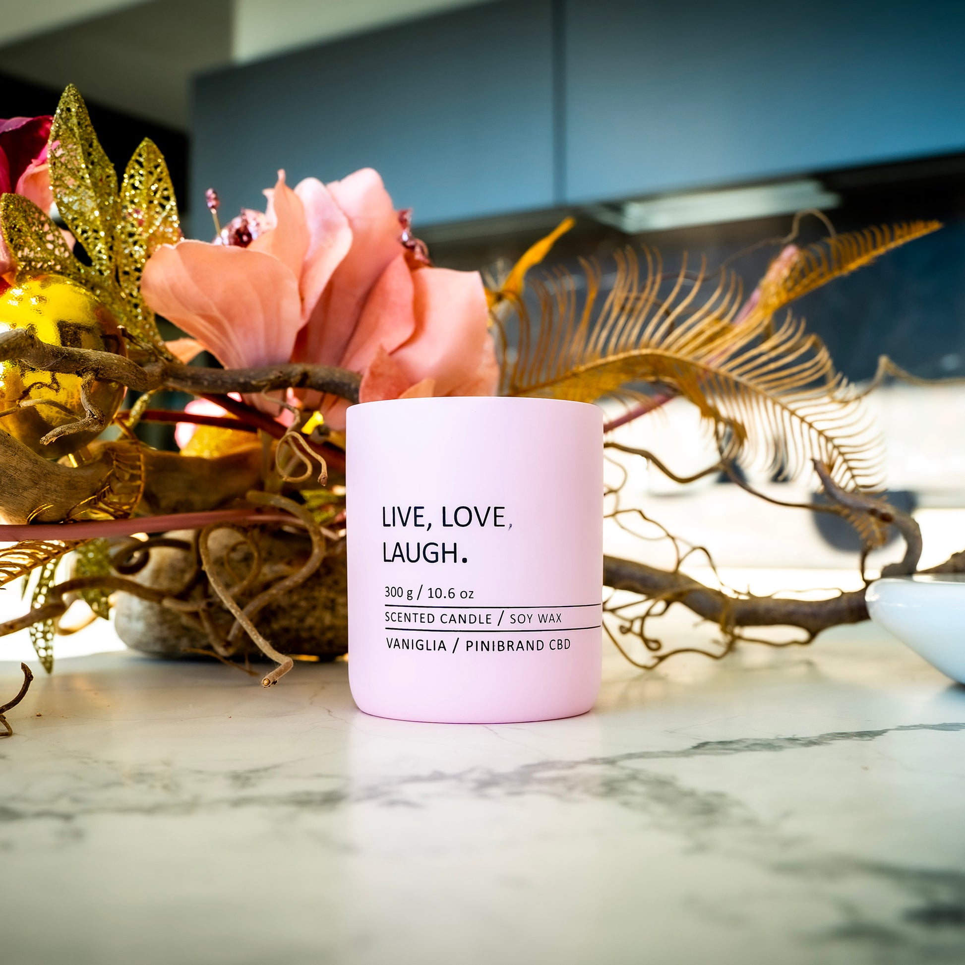 LIVE, LOVE LAUGH - Candela profumata alla vaniglia che emana un aroma dolce e delicato. La vaniglia è una spezia ottenuta dai semi della pianta delle orchidee.